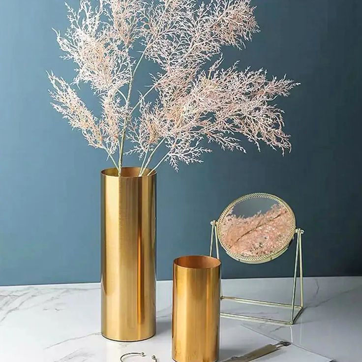 GOLD STEEL CYLINDER VASE SET